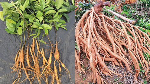 粵森優(yōu)質牛大力種苗成熟后現場開挖結薯效果生長快、結薯多、產量高、藥效有效成分高